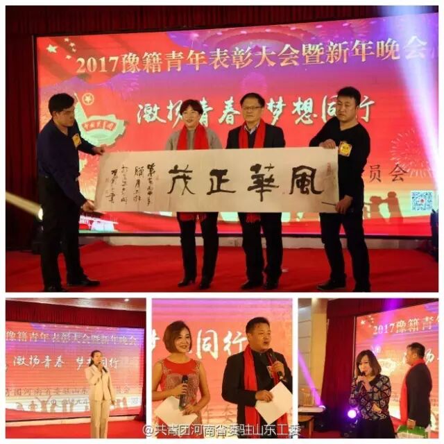 身边榜样,前行力量。2017年1月7日,河南驻山东团工委在济南召开“2017年度优秀青年表彰大会暨新年晚会” ,弘扬模范精神,发挥榜样力量。河南省政府驻山东办事处主任马金平,共青团山东省委城工部部长李圣安、河南驻山东团工委书记郑玉娥、安徽驻山东团工委书记丁晓平、福建驻山东团工委书记郑学斌、山东省河南商会执行会长邓深义等出席会议。河南驻山东团工委副书记高江北主持会议,会议在全体与会人员共唱团歌中拉开帷幕。